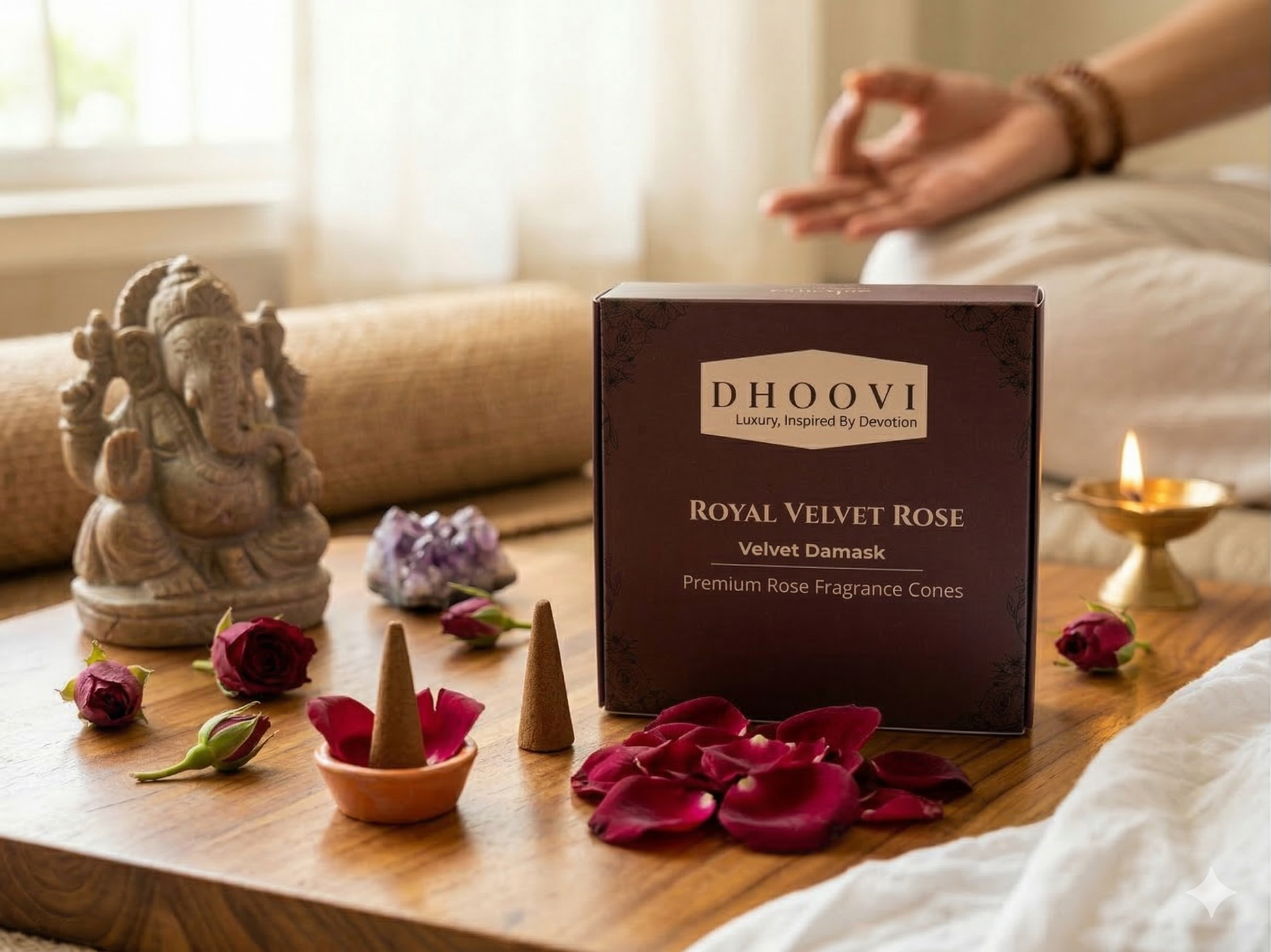 Dhoovi Premium Royal Velvet Rose Dhoop Cones β Charcoal-Free for Meditation, Yoga & Daily Pooja (Pack of 40)